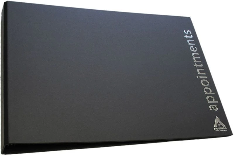 Black ring binder designed to hold loose leaf refill appointment pages. 12 column.
