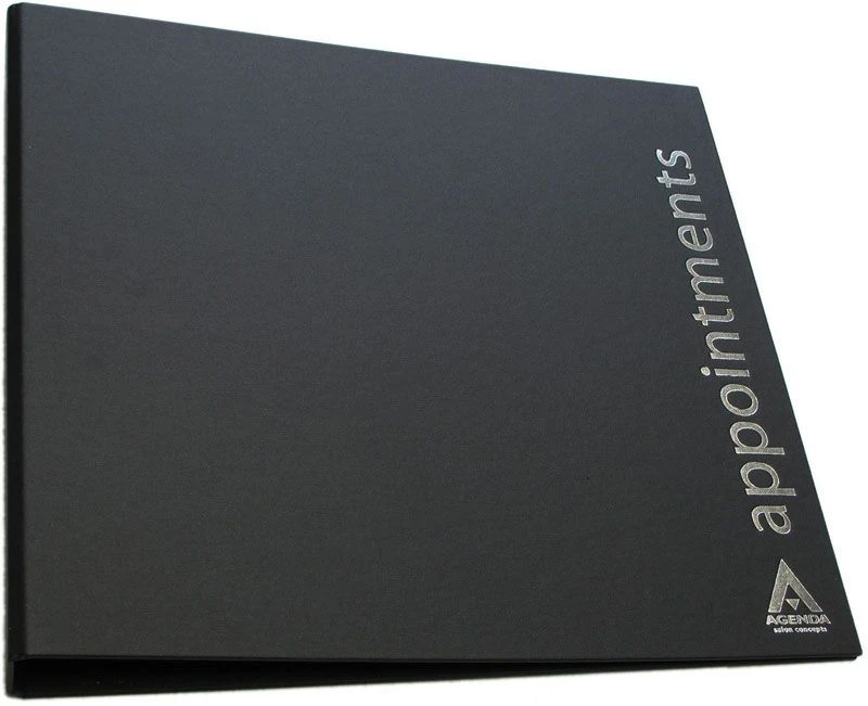 Black ring binder designed to hold loose leaf refill appointment pages. 9 column.