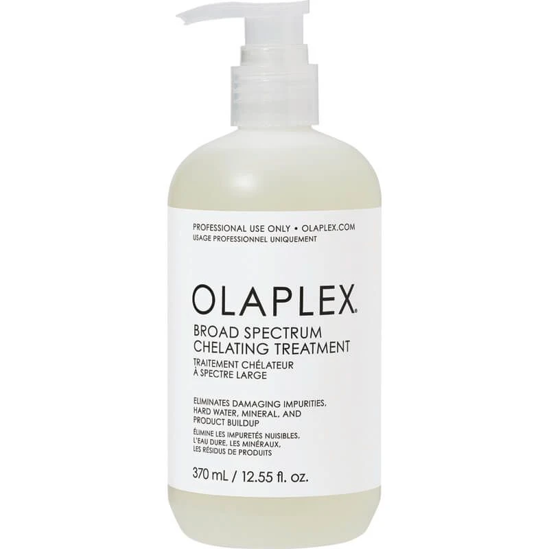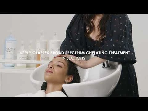 Olaplex Broad Spectrum Chelating Treatment removes a wide range of heavy metals, minerals, chlorine, pollution and discoloring copper and calcium deposits to create a clean canvas for optimal results from all chemical services.