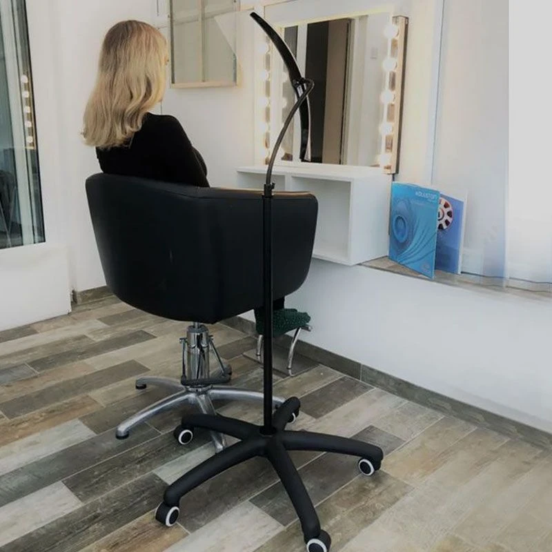 A floor standing portable protection screen on a castor base perfect for use in any hair or beauty salon.