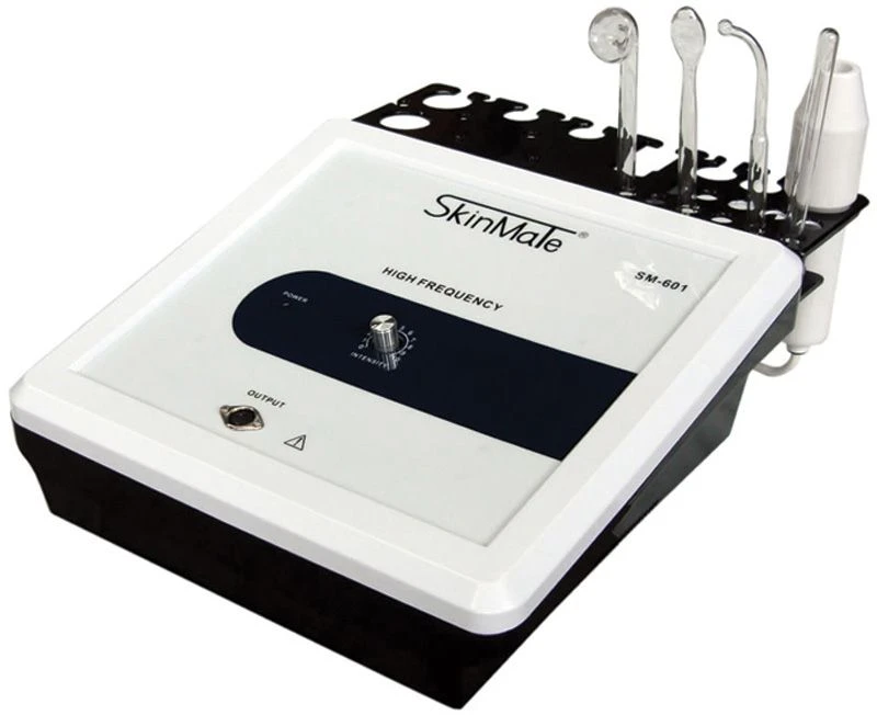 This high frequency machine comes complete with intensity control, 4 accessory glass electrodes, 1 mushroom, Y-neck, indifferent and flat spoon electrodes. Direct and indirect treatment facility incorporated.
