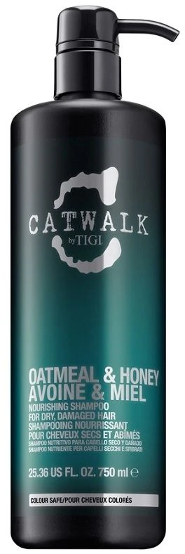 TIGI Catwalk Oatmeal & Honey Nourishing Shampoo contains wheat protein, vitamin E and glycerin to help smooth dry, damaged hair leaving it sofy and silky.