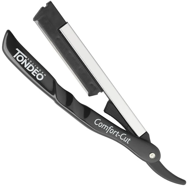 Tondeo Comfort Cut Folding Razor, includes detachable comb and a comfort blade system, ideal for shaving.